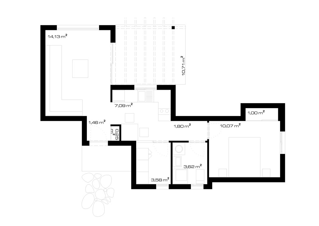 Nutzfläche: 43,00 m² + 10,71 m²= 53,71 m²