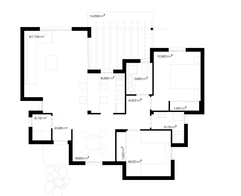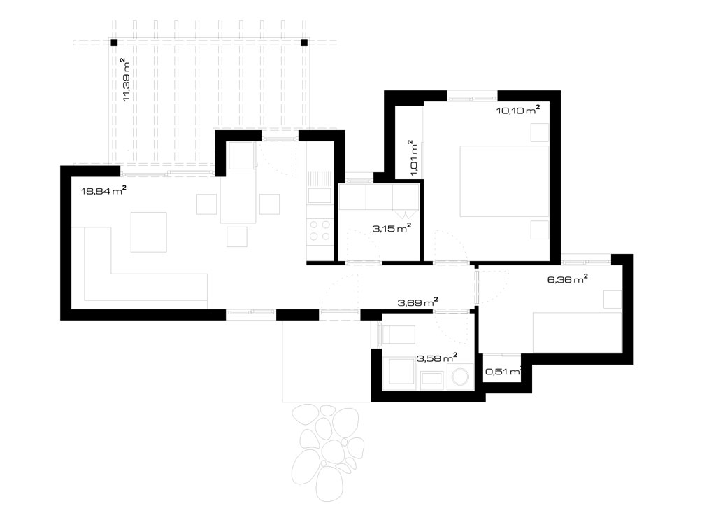 Nutzfläche: 47,24 m² + 11,39 m² = 58,63 m²